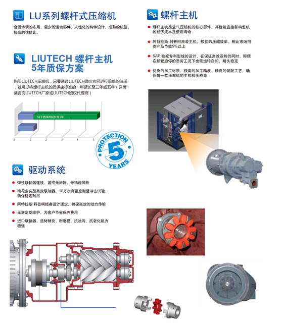 合理協(xié)調(diào)的布局,最少的運(yùn)動部件,人性化的構(gòu)件設(shè)計,全面提升LU系列空氣壓縮機(jī)的性價比。