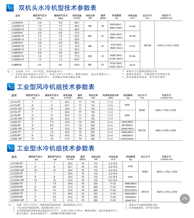 LU(250kW-560kW)系列螺桿式空壓機(jī),依托集團(tuán)公司先進(jìn)的歐洲技術(shù),考慮大型機(jī)組的適用范圍、運(yùn)行經(jīng)濟(jì)性、可靠性及操作維護(hù)的方便性而精心設(shè)計和組裝的。配置久經(jīng)考驗的進(jìn)口運(yùn)動部件,整機(jī)運(yùn)轉(zhuǎn)穩(wěn)定、可靠。同時,針對中國環(huán)境工況專門改進(jìn)適應(yīng)性強(qiáng),特別適合于氣量大的集中供氣場所。