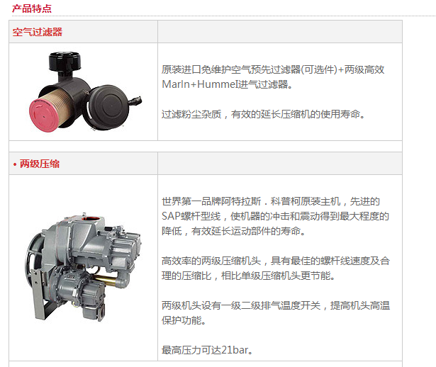 新款移動(dòng)機(jī)的螺桿主機(jī)采用原裝進(jìn)口的阿特拉斯·科普柯集團(tuán)Size 2系列兩級壓縮的高壓主機(jī),輸出壓力可達(dá)17-21公斤,效率高,可靠性好。